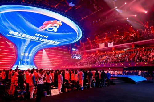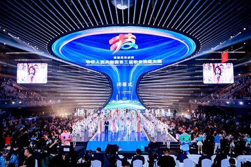 華燈璀璨,掌聲如潮。9月23日晚,當(dāng)348名獲獎選手高舉隊旗與獎?wù)拢?dāng)大賽會旗在璀璨的舞臺上完成交接傳遞,當(dāng)良渚文化和人形機器人在現(xiàn)場8000余名觀眾的歡呼聲中共舞……中華人民共和國第三屆職業(yè)技能大賽閉幕式在鄭州奧體中心體育館完美落幕!