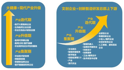 產(chǎn)業(yè)方面:以“大健康”+“文創(chuàng)娛樂(lè)”+“創(chuàng)新智造”為主導(dǎo)產(chǎn)業(yè),科技服務(wù)和創(chuàng)意研發(fā)為輔助產(chǎn)業(yè)。