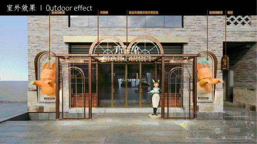 麥陌的門店設計,更是一場將商代青銅文明與烘焙生活完美融合的視覺盛宴。建筑整體以金色與木色為主,墻上的裝飾、立柱上的浮雕,像是從商代青銅器上拓印而來。店內(nèi)面包陳列臺選用原木與石材,呼應“麥”的自然本真。烘焙區(qū)采用開放設計,可以預見,烤爐的麥香將從這棟建筑飄至街區(qū)每一個角落,讓行人在不知不覺中放慢腳步。