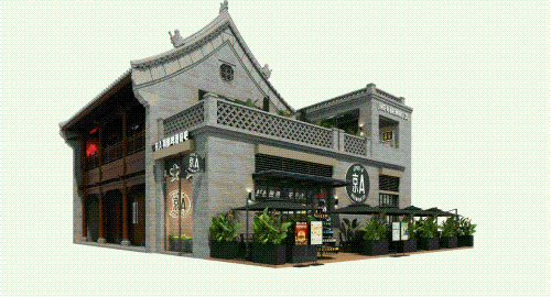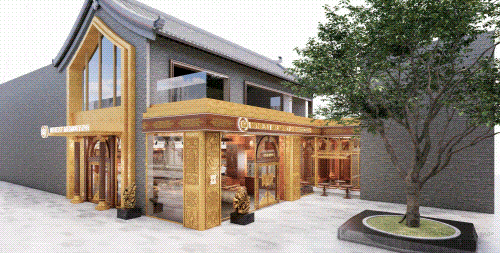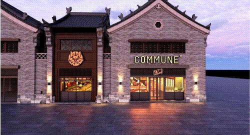 以COMMUNE幻師的門店設計為例——從效果圖可以看出,建筑外部以青灰色磚墻復刻商代建筑肌理,檐角神獸造型融入現(xiàn)代燈光設計,整體風格充滿著古樸與時尚。店內(nèi)則以暖色調(diào)營造松弛感,酒墻擺滿了來自全球的精釀。每當味蕾觸碰到精釀的麥香,窗外同時飄入來自3600年前夯土的氣息——在這里,顧客喝的不是單純的酒,而是歷史與現(xiàn)代的奇妙敘事。